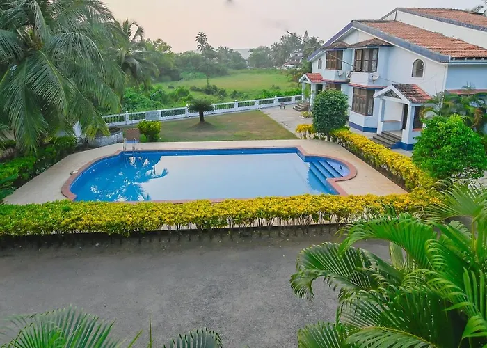 The 4-bedroom Serene Beautiful 4Bhk Arpora Baga Pool villa offers proximity to nearby tourist spots, such as Splashdown Waterpark, situated approximately 25 minutes' walk away.